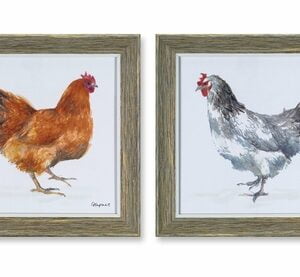 Framed Chicken Print (Set of 4) 10″H Wood/Glass