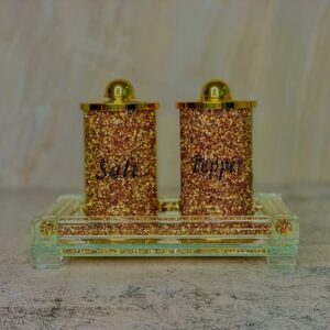 Salt & Pepper on a Tray, Gold Crushed Diamond Glass