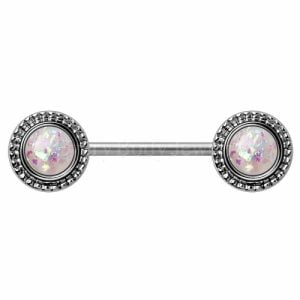 316L Stainless Steel Ornate White Synthetic Opal Nipple Bar