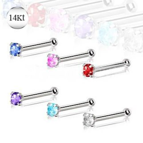 14Kt White Gold Stud Nose Ring with a Prong Setting Cubic Zirconia.