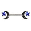 • Nipple Bar / Nipple Jewelry with Crescent Moon and Blue CZ Star