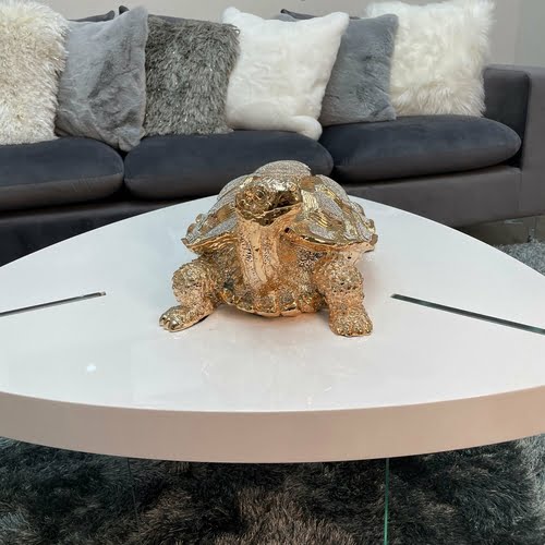 Bring an elegant touch to any tabletop with this exquisite, crystal-embellished, delightfully extravagant turtle. Made of gold-plated ceramic, this decorative accent is suitable for applications in home and office.