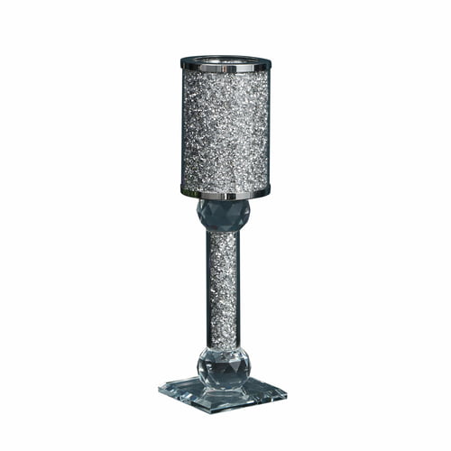 Bring an elegant touch to any tabletop with this beautiful, crystal embellished, decorative candlestick holder. Made of crushed diamond glass, this luxury accent is suitable for applications in your living room, dining room or bedroom. Available in 3 sizes – Large, Medium and Small, this beautiful accessory doubles as a functional piece and decorative accent bringing a modern touch to any home. Packaged in an elegant box, this is a perfect gift idea for your loved one.