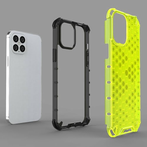 This iPhone 12 Pro Honeycomb SlimGrip Hybrid Bumper Case uses soft TPU + hard PC 2-in-1 construction with a 4-corner airbag and protruding edge design that not only prevents impact, but also shields the surface to protect the phone from damage. This durable case sturdy shell is UV-painted and double-coated PC board, shiny and scratch-resistant, translucent TPU edge glittering;Fashionable and beautiful honeycomb design makes your Phone unique. It looks great both in feel and appearance.