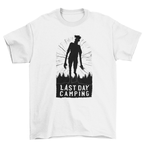 Awesome t-shirt design featuring a zombie with the quote “Last day camping”.