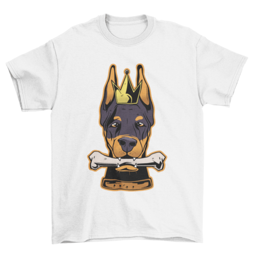 Great t-shirt design that includes an illustration of a dobermann’s head with a crown.