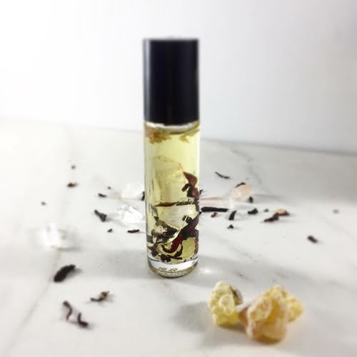 This is one of my favorite things yet. I found these crystal pieces on a trip to Napa and knew they were something special. Each blend has a quartz and agate crystal, a piece of frankincense resin, Palo santo wood and hibiscus flowers. The purpose of this blend is grounding for deeper meditation or other spiritual practices. This particular blend of essential oils was designed around spiritual practice and whatever denomination that is to you. The contents are suspended in an organic jojoba oil so that you can easily roll onto your pressure points and it will soak right in.