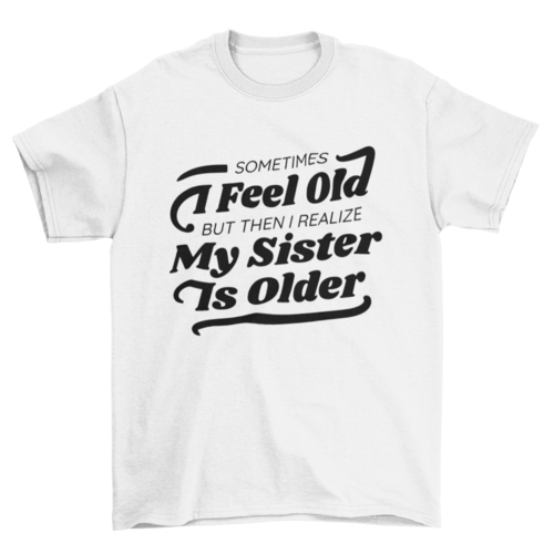 Funny t-shirt design featuring the quote “Sometimes I feel old but then I realize my sister is older”.