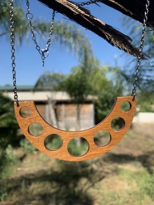 - Stainless steel chain 16″-18″ long (designed to hang on chest as bib style necklace)