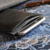 Made from the highest quality all American Horween Leather and with wool felt, our iPhone wrap brings elegance and style in a slim line package. The slim and minimalistic design allows the wrap to be used under any situation, and the rustic unlined natural look, with the heat burnished details and 2 slots for cash and cards are perfect to keep any outfit looking smart.