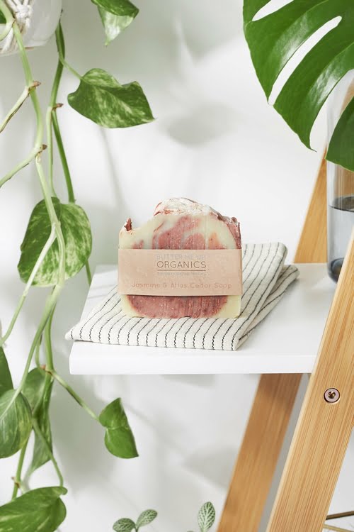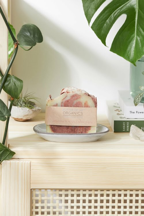 Ingredients: Saponified Olive Oil*, Coconut Oil*, Safflower Oil*, Shea Nut Oil*, Camelina Oil*, Rose Clay, Bronze Mica, Atlas Cedar EO, Pine EO*, Jasmine Absolut, Jojoba Oil.