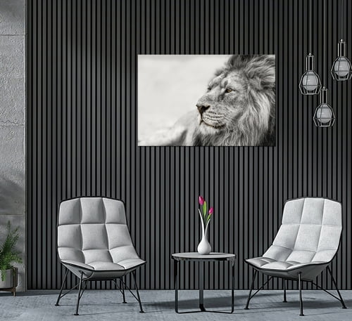 Modern luxury can be yours with this Observing Lion Print Acrylic Wall Art from Amazing Rugs. Crafted from industrial grade 1/8″ acrylic, this single-panel art is durable, lightweight and ready to hang.  Ideal for home or business this glamour art features a high-gloss finish, UV protection, and smooth, polished edges for a sleek modern look.