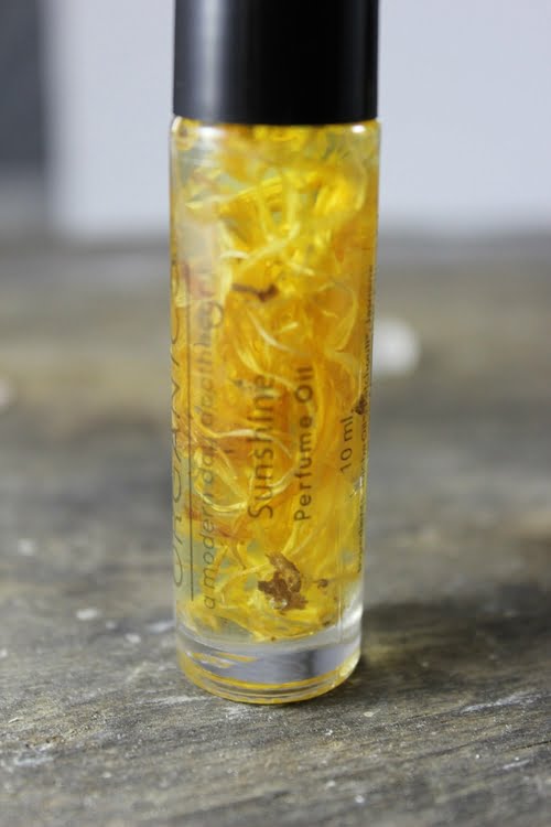 This Sunshine blend is a wonderfully happy citrus blend. Made with a sweet blend of orange, jasmine, and patchouli suspended in organic jojoba oil which is the closest oil to our own natural sebum. This oil sinks in very quickly and will last a long time. With organic calendula flowers suspended in the oil, it’s not only beautiful but healing too!