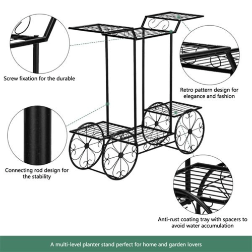 Garden Cart Stand & Flower Pot Plant Holder Display Rack, 6 Tiers Metal constructed frame makes plant stand durable and it can accommodate various plants at a time. It is perfect for your garden, patio, windowsill, porch, office stairwell corner. Suits indoors / outdoors. Our attractive plant stands can be used on balconies, hallways, kitchens or bathrooms to decorate dull spaces.