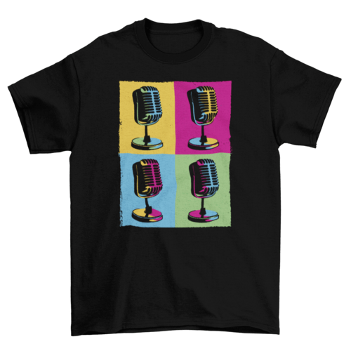 Cool t-shirt design consisting of a pop art portrait with our microphones.