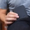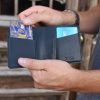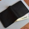 Organize the essentials with this slim, stunning Ram Wallet that delivers stylish symmetry in a minimalistic design. Rich, black leather has the softest touch with a finished exterior and gently textured underside to hold your bills in place. Crisp stitching amplifies the cool look of two angled card holder pockets.