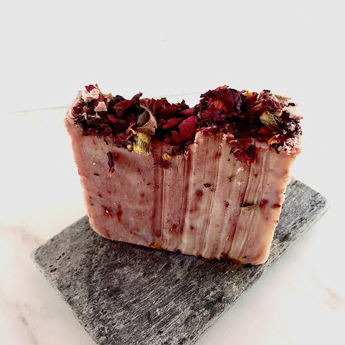 New Soap!!!! Love roses, well this is the bar for you. Made with natural pink clay, rose absolut and a delectable layer of rose petals, this bar has all the makings of a new favorite. Smells amazing, feels amazing, and will leave your skin feeling amazing. This bar is made from the best stuff on earth and will not only make your nose happy but your body happy as well. It will leave your skin soft, hydrated, and glowing. This soap is vegan.