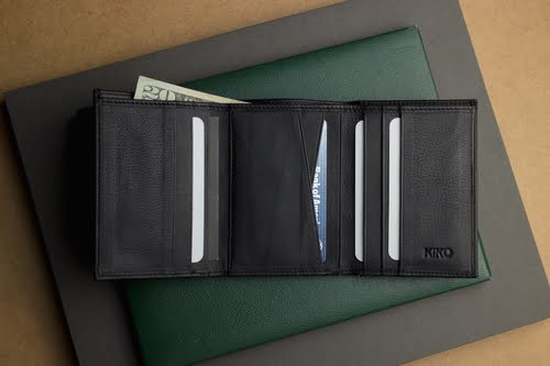 Our Trifold Wallet is finely crafted with butter soft full grain cowhide leather and hand turned edges for durability. The Wallet features a full bill compartment, 9 card slots, and an ID window for efficient access.